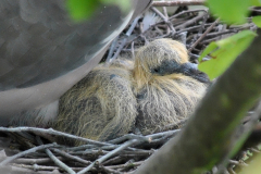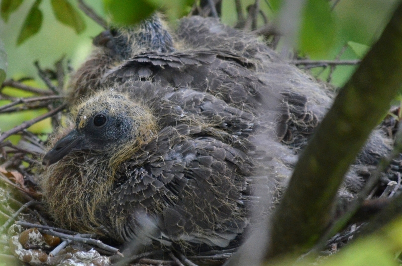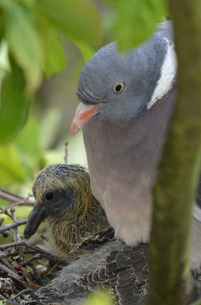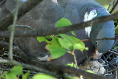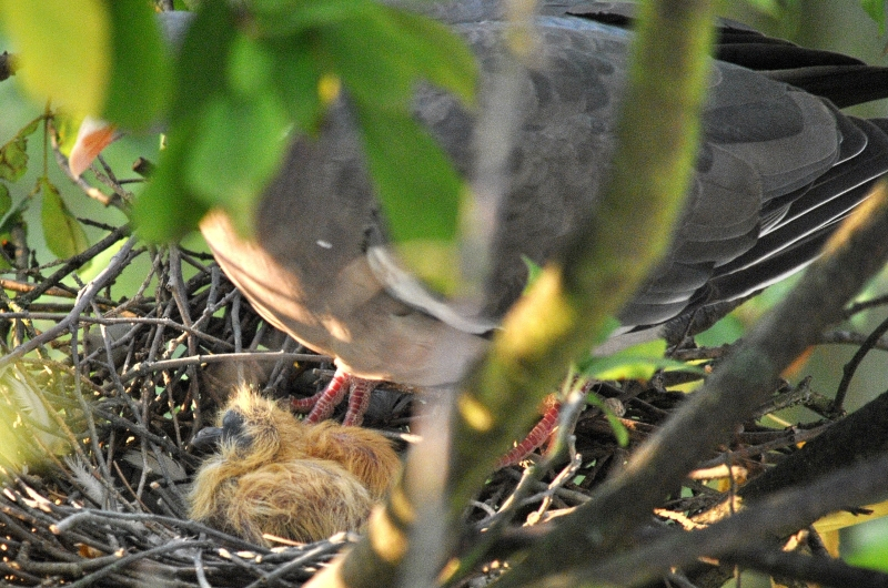 Im August / September 2012 konnte ich vom Balkon aus ein Ringeltaubenpaar beobachten, das sich in unmittelbarer Nähe sein Nest baute und zwei Küken aufzog. Leider haben es die Täubchen nicht geschafft, flügge zu werden, da das Nest etwa zehn Tage, bevor die Jungen es verlassen hätten, geräubert wurde.