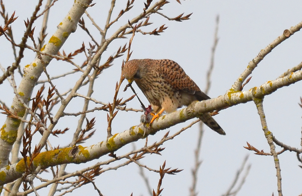 Hier kann man noch ein kurzes Filmchen ansehen, in dem der Turmfalke die letzten Reste der Maus verschlingt: