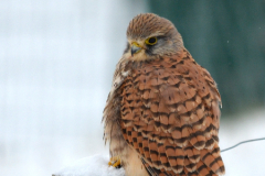 Ob Bäumchen, Zaunspfahl, Ansitzstange, Verkehrsschild oder Hochhaus – im Winter jagen Turmfalken öfter vom Ansitz aus als im Sommer, da der Rüttelflug sehr energieaufwendig ist und sich jeder Falke nur selber versorgen muss. (Im Frühjahr und Sommer, wenn eine Familie zu ernähren ist, kommt viel häufiger die wesentlich erfolgversprechendere Flugjagd zum Einsatz.)